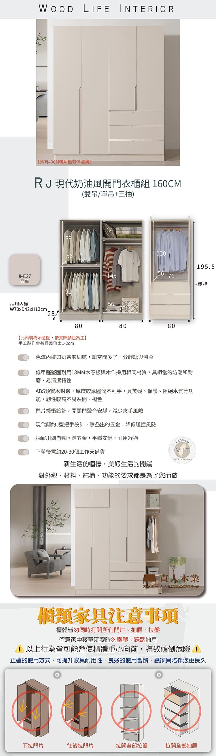 點我下載直人木業-RJ現代奶油風開門衣櫃組160公分(單吊/雙吊+三抽)雙吊款+三抽
