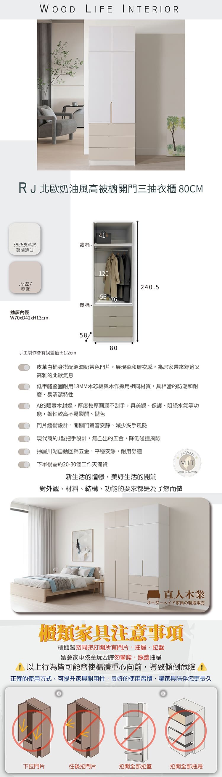 《HOPMA》美背復古三門二抽二格衣櫃 台灣製造 衣櫥 抽屜櫃 衣物收納櫃