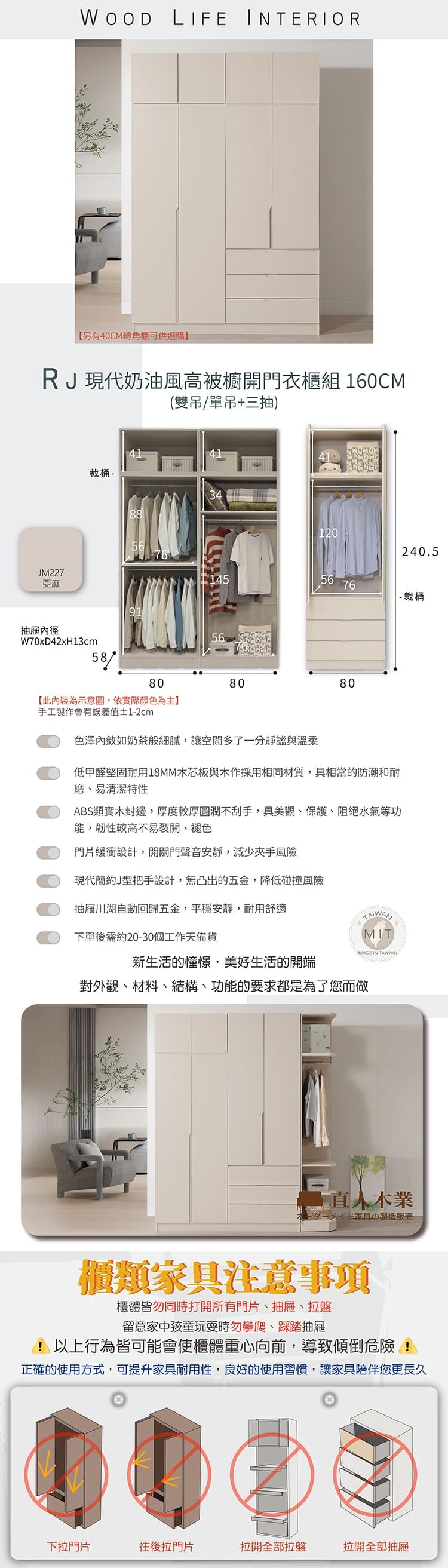 點我下載直人木業-RJ現代奶油風高被櫥開門衣櫃組160公分(單吊/雙吊+三抽)單吊款+三抽
