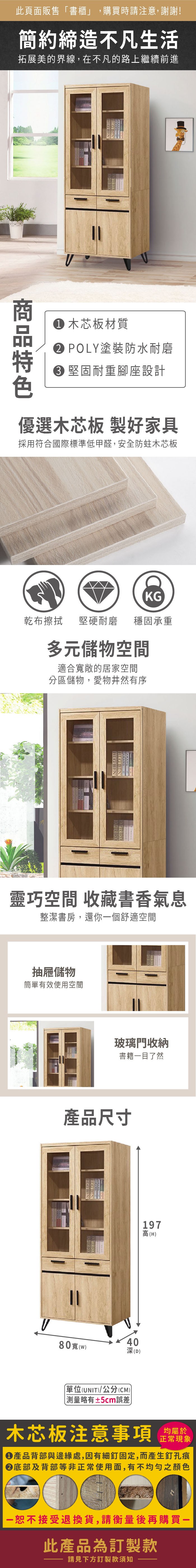 文創集 麥森2.7尺四門二抽書櫃-80.8x39.8x192.8cm免組