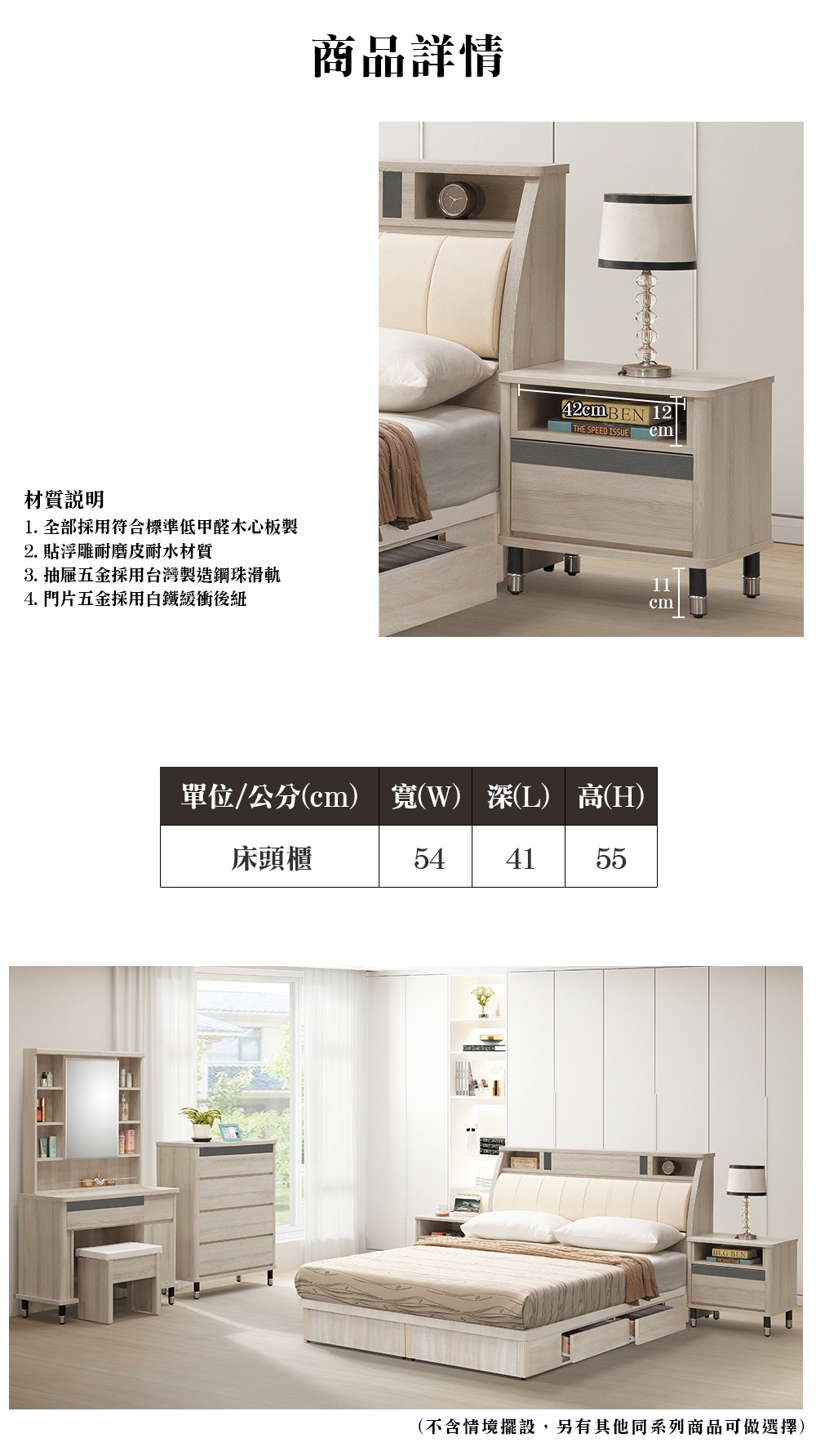 ※此賣場僅販售 波斯達白橡木色1.8尺床頭櫃※