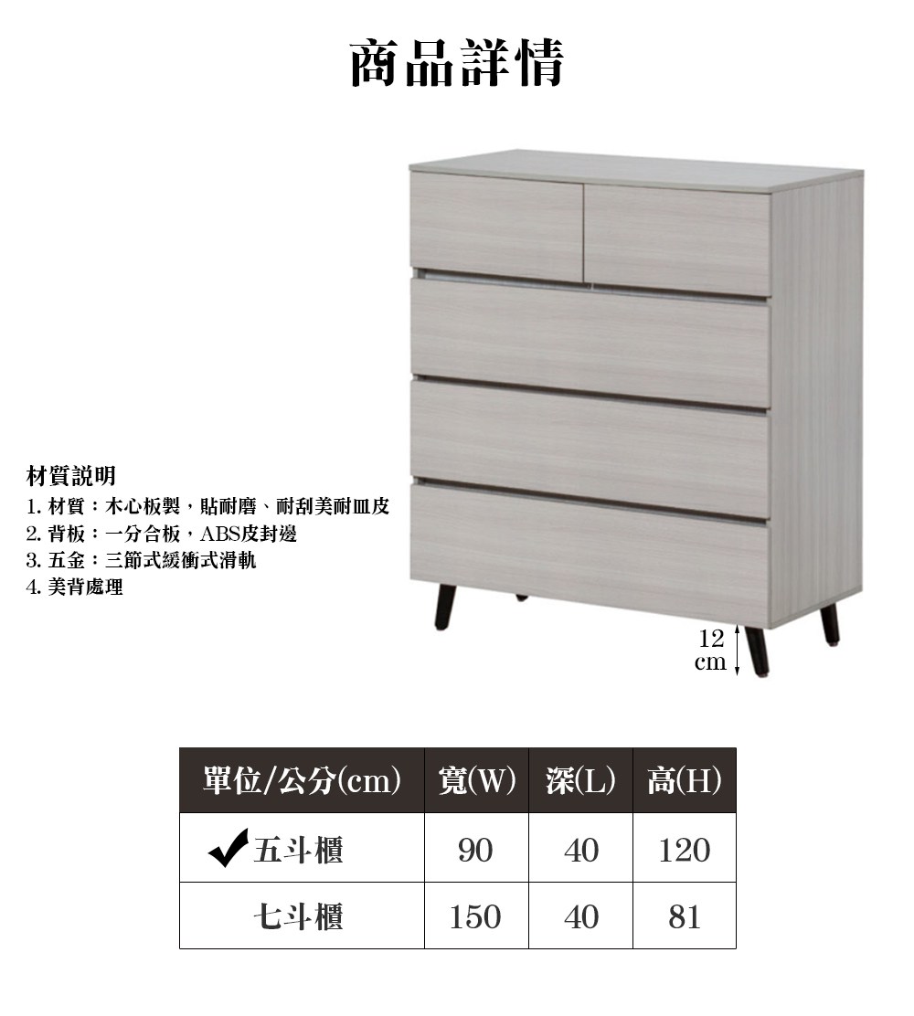 ※此賣場僅販售 希也納淺灰橡色3尺五斗櫃※
