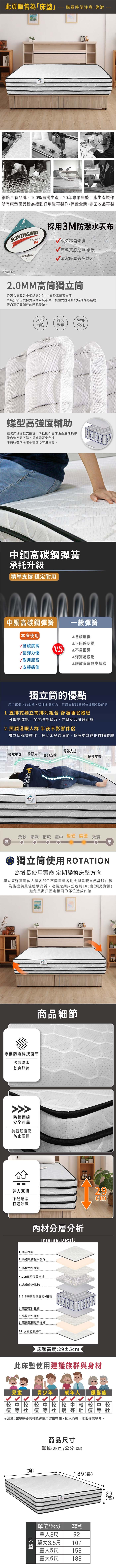 ASSARI-舒眠高彈力支撐四線獨立筒床墊-單大3.5尺單大3.5尺