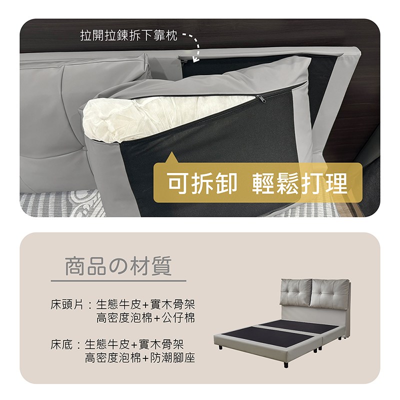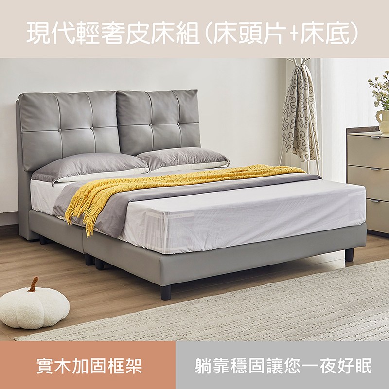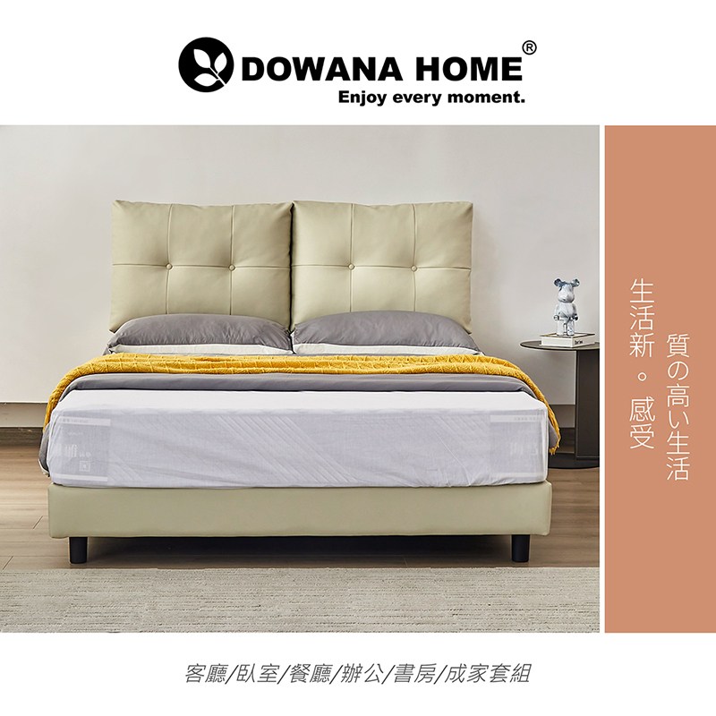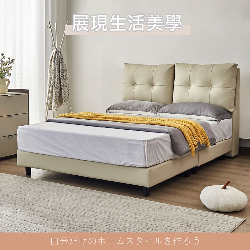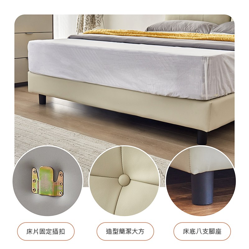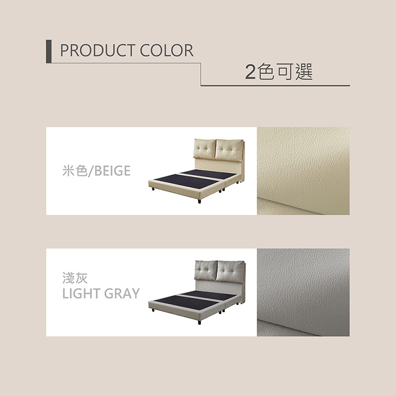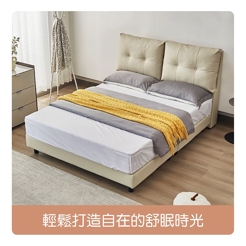 【多瓦娜】亞岱爾5尺皮床組/床頭+床底-二色米色