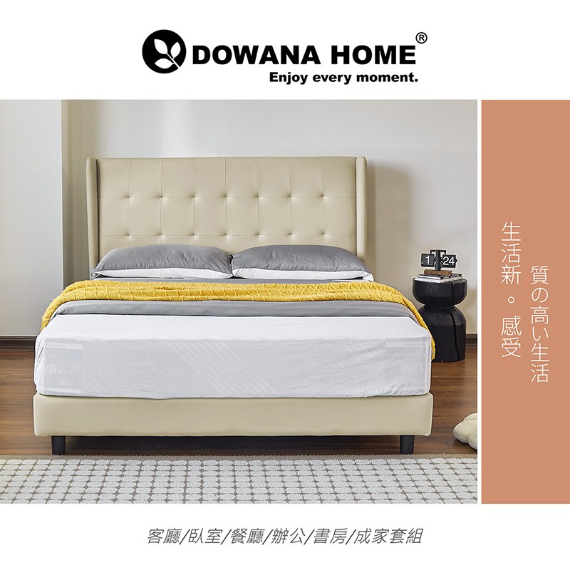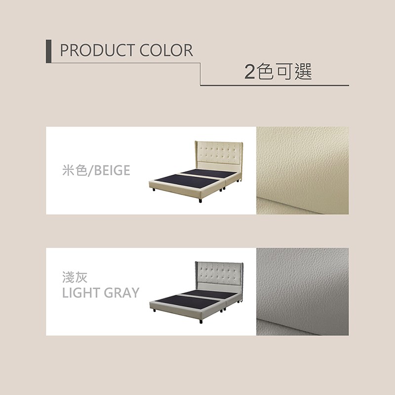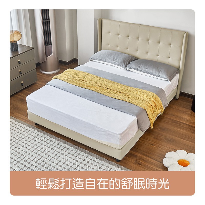 【多瓦娜】亞爾曼5尺皮床組/床頭+床底-二色米色
