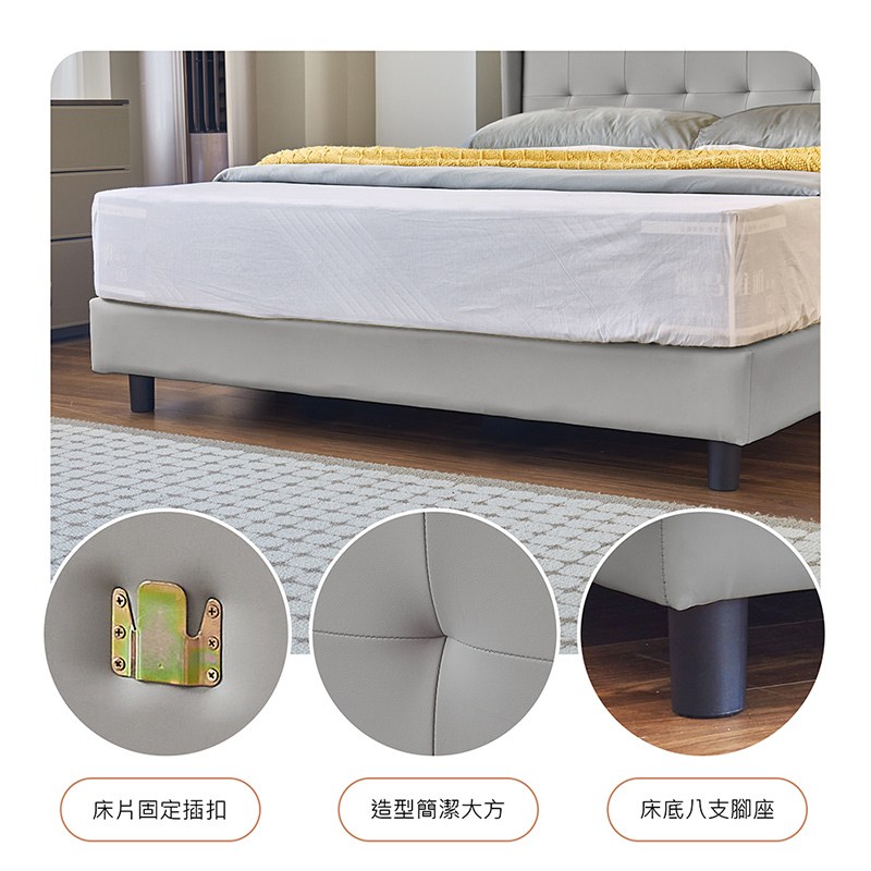 【IDEA】威尼5尺雙人貓抓皮床架/房間2件組(床頭+床底)淺灰色