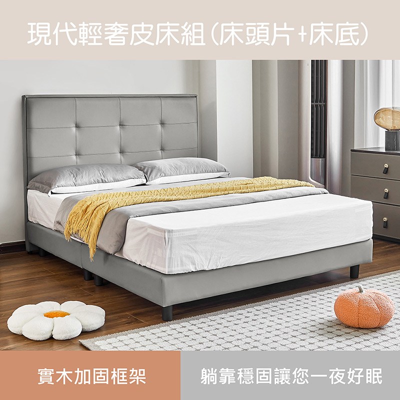 【IDEA】OWEN歐文現代5尺雙人皮革床架/房間3件組(床頭+床底)