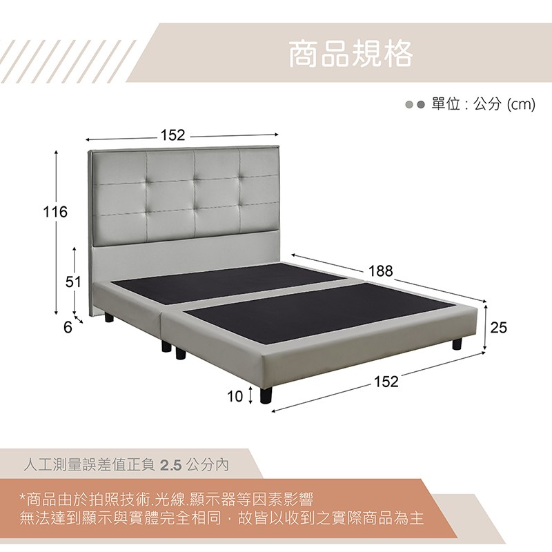 IHouse-厚Q豆腐 雙大6尺(貓抓皮床頭片+高腳床架)-房間兩件組/床組煙霧灰#627-22