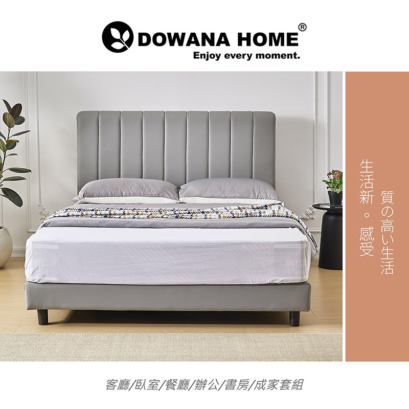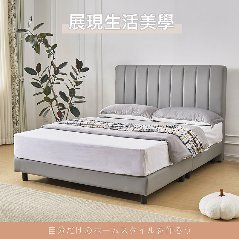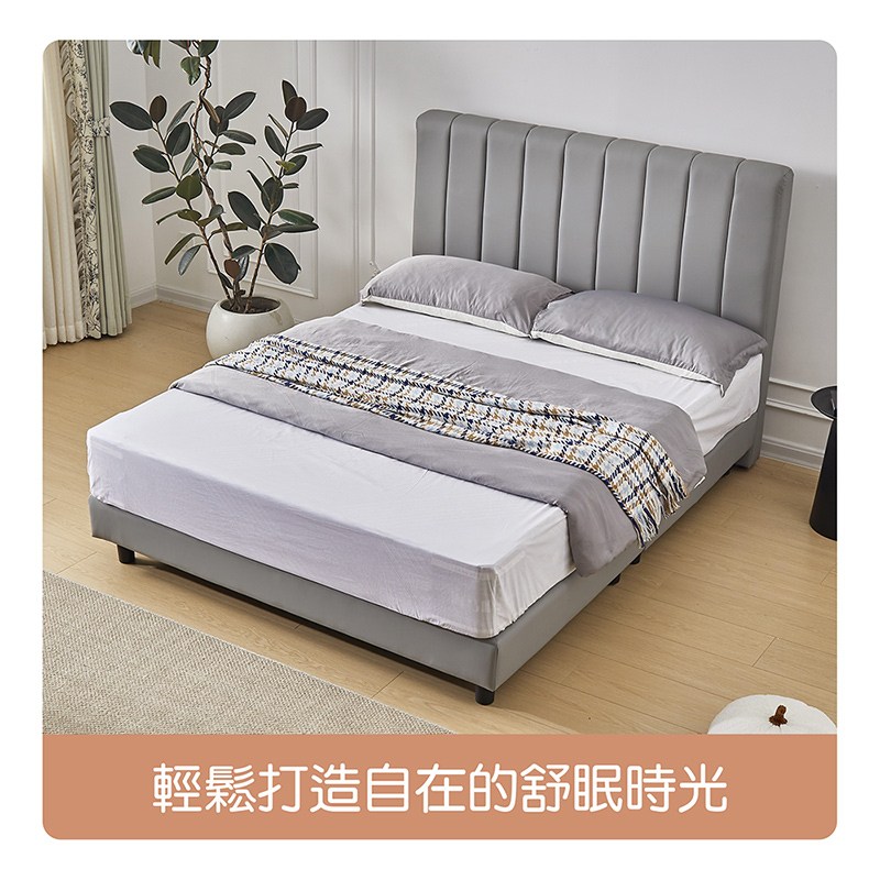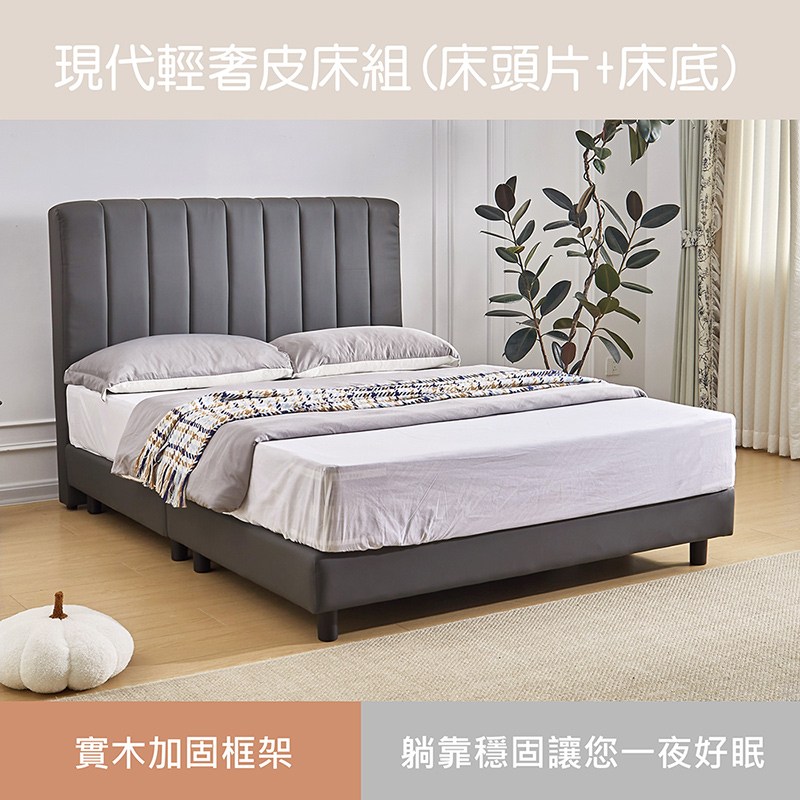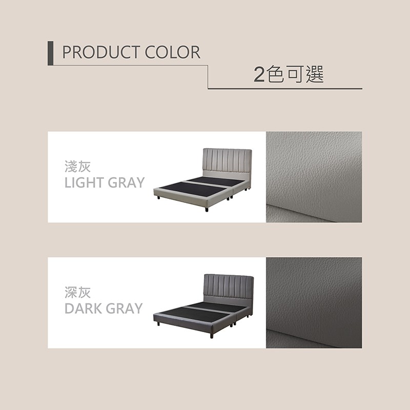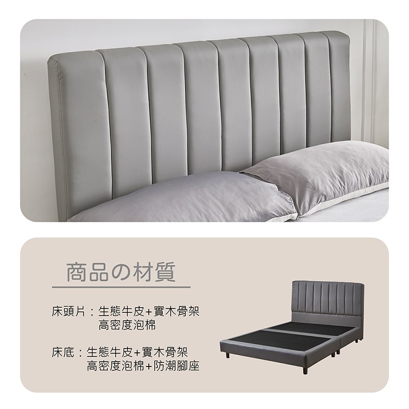 【多瓦娜】諾拉5尺皮床組/床頭+床底-二色淺灰