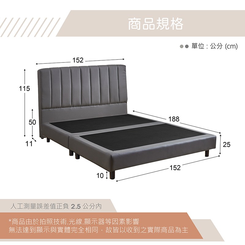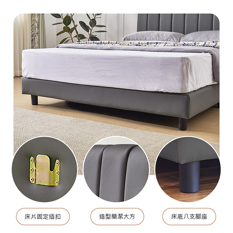 【IDEA】威尼5尺雙人貓抓皮床架/房間2件組(床頭+床底)淺灰色