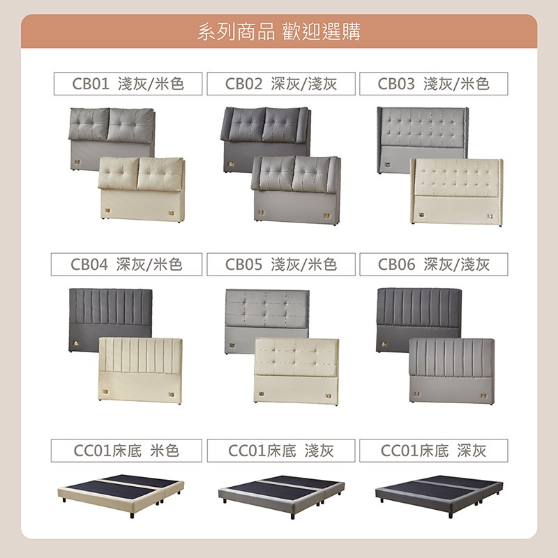 【多瓦娜】黑澤爾5尺皮床組/床頭+床底-二色米色