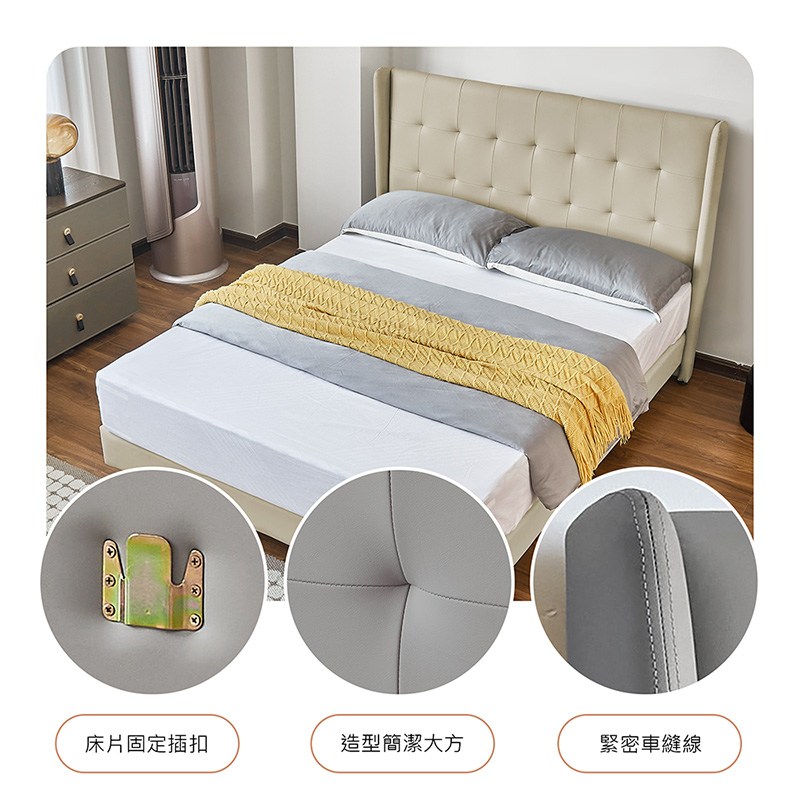 台灣訂製客製化貓抓皮方格插頭6尺床雙人加大床雙人床床組床台【235C1903-2】Leader傢居館