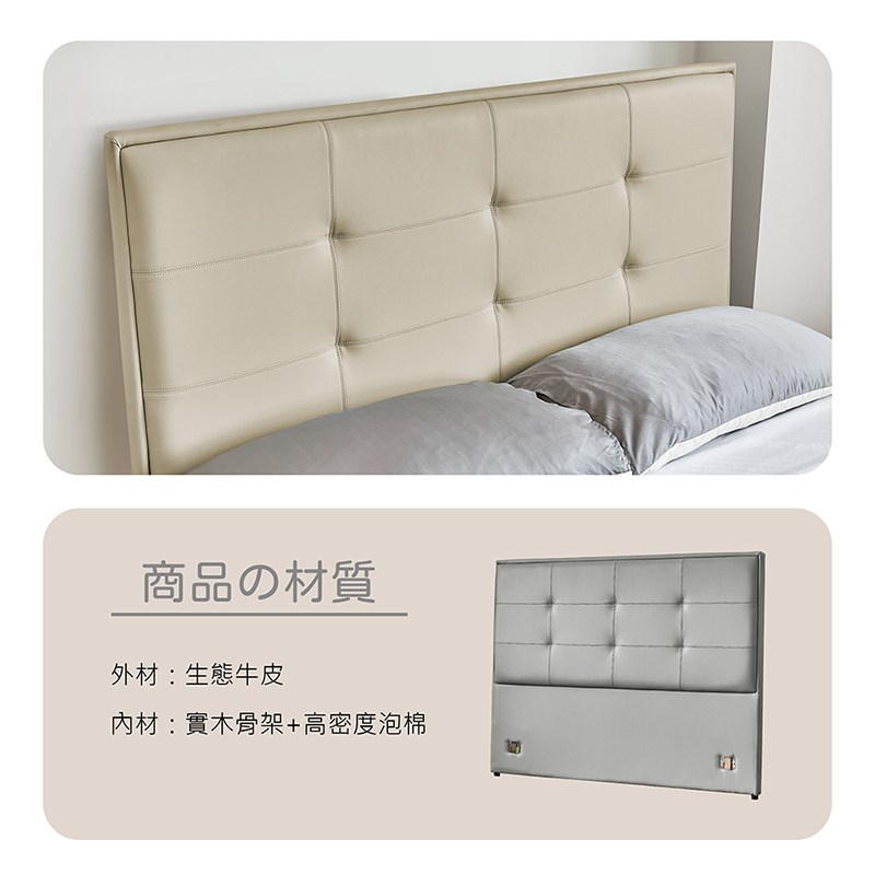 【多瓦娜】黑澤爾5尺皮床頭片-二色米色