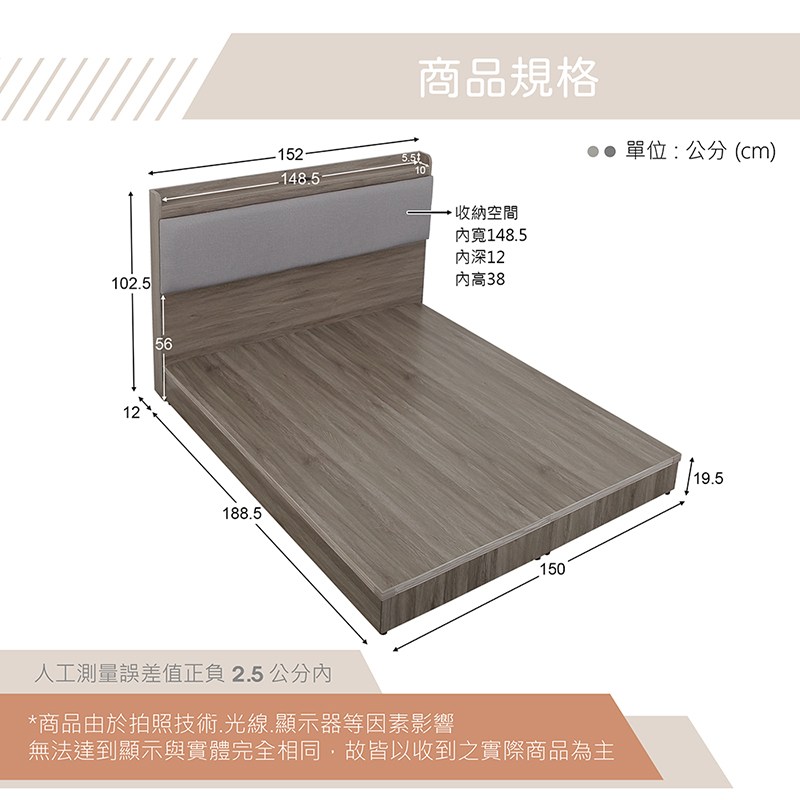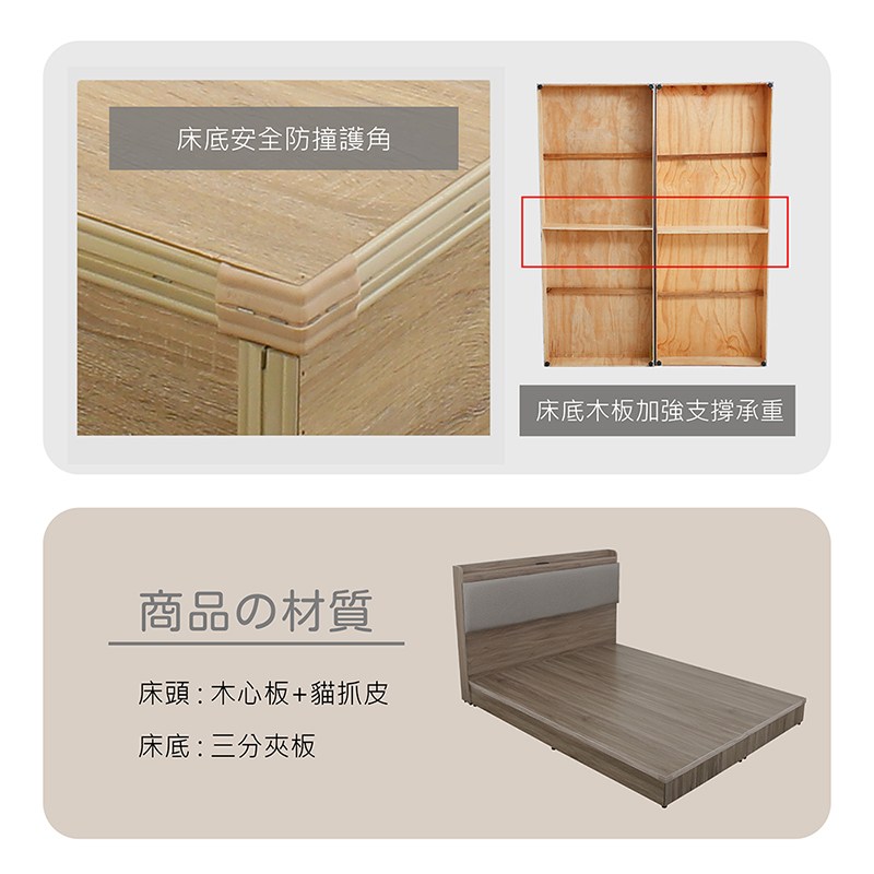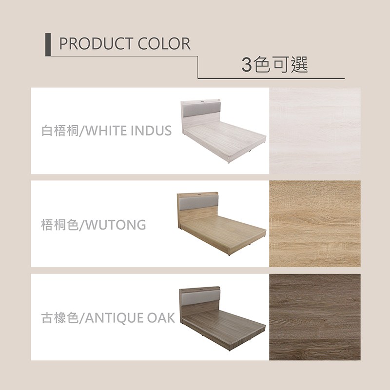 點我下載【多瓦娜】亞克5尺床組二件式/床頭片+床底-三色白梧桐