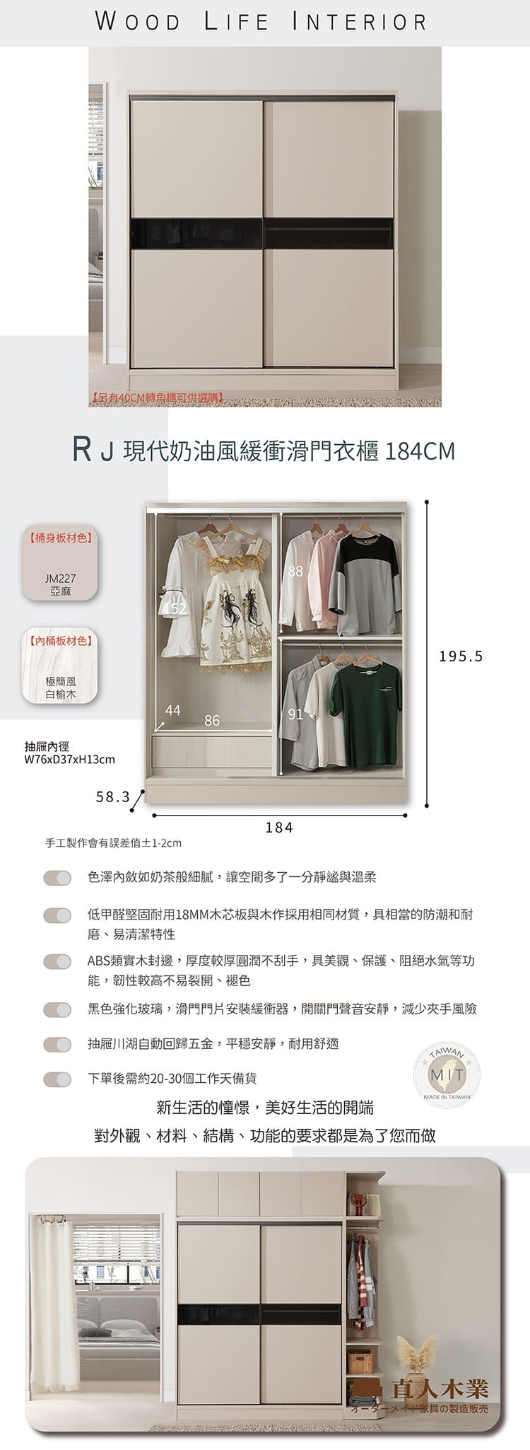 IDEA MIT凡賽4X6尺木質收納抽屜滑門衣櫃/衣櫥(3色任選)