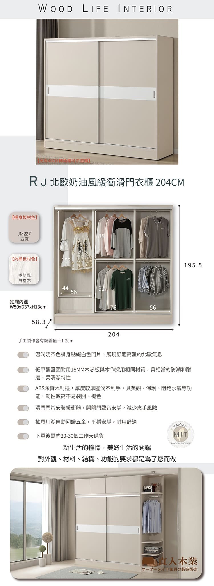 直人木業-RJ北歐奶油風緩衝滑門衣櫃204公分