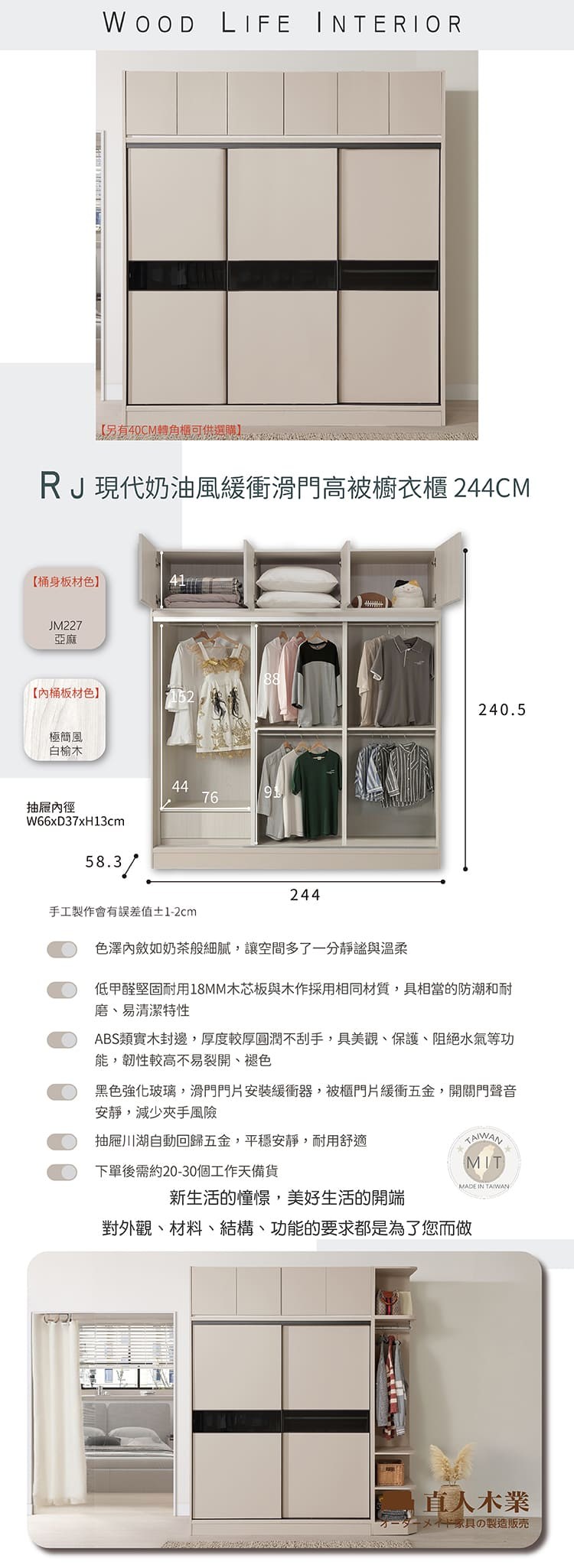 IDEA MIT凡賽4X6尺木質收納抽屜滑門衣櫃/衣櫥(3色任選)