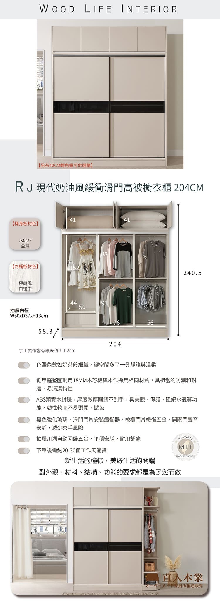 【歐風別館】秋楓5*8尺白楓木色滑門四抽加高衣櫃【棉被櫃】【基隆至台中免運費】