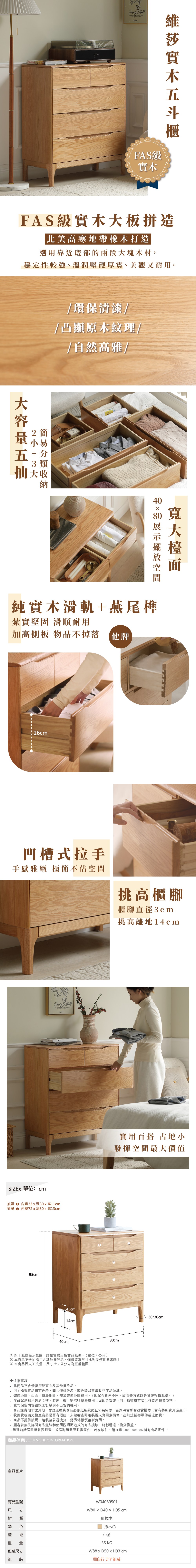 hoi! 林氏木業北歐風百搭0.6M五斗櫃 LS187 原木+白色