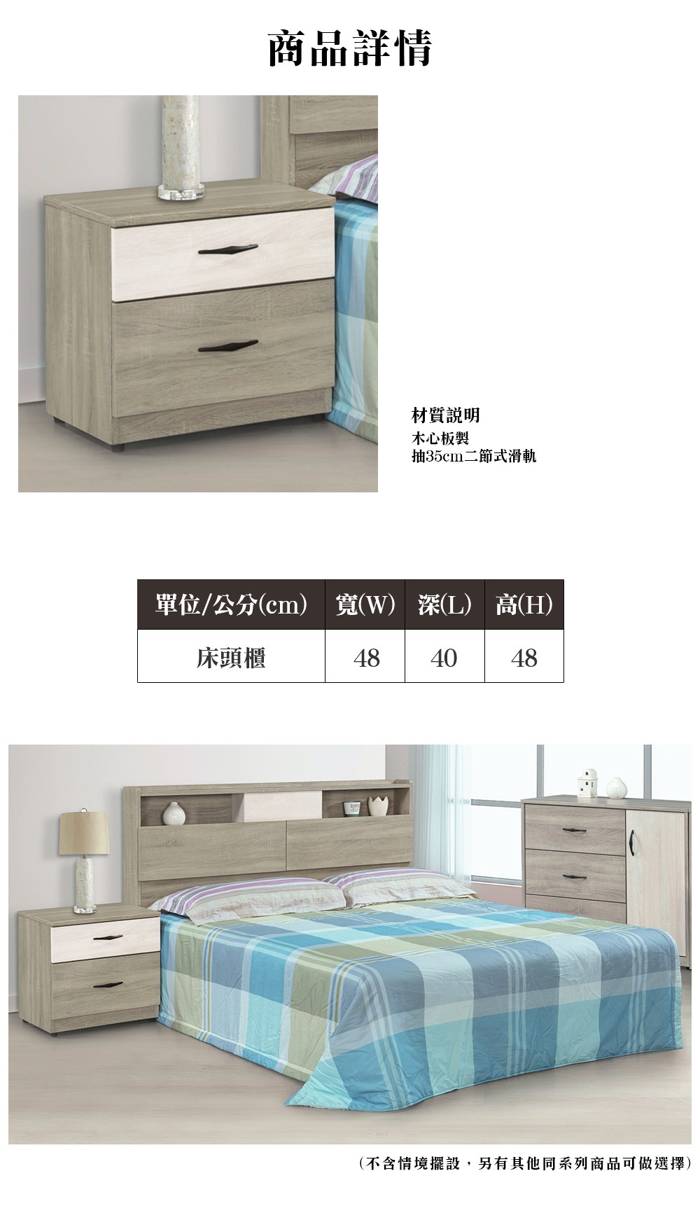 ※此賣場僅販售 愛麗淺灰白原切雙色1.6尺二抽床頭櫃※