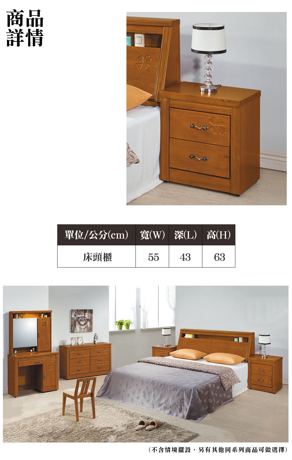 ※此賣場僅販售 嵩紐幸運草柚木色1.8尺二抽床頭櫃※