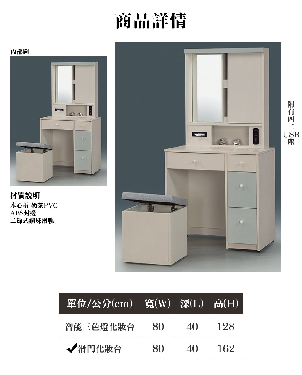 ※此賣場僅販售 靜柔2.7尺滑門化妝台(含椅)※