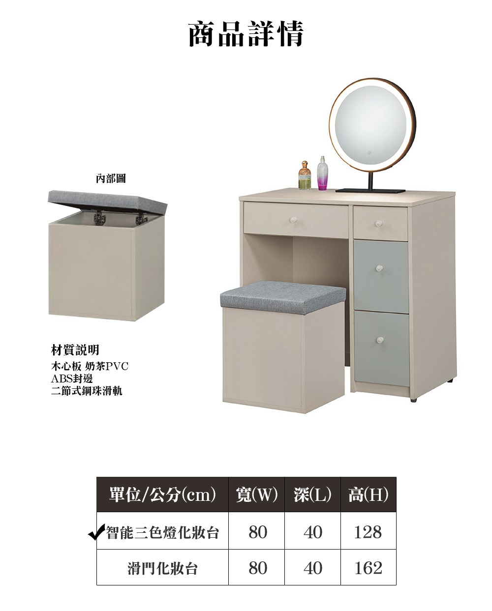 ※此賣場僅販售 靜柔2.7尺智能三色燈化妝台(含椅)※