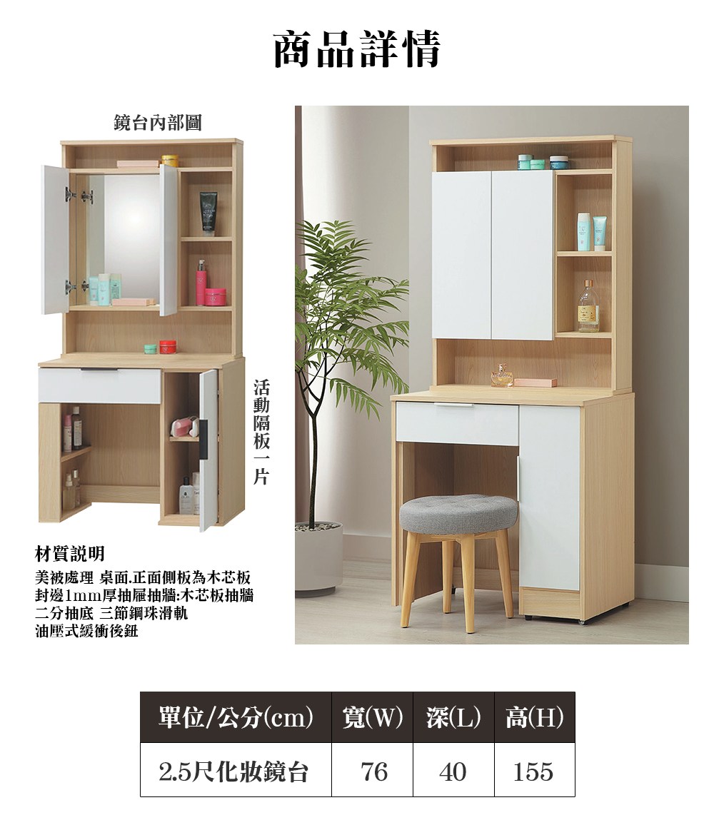 ※此賣場僅販售 斯揚卡原木雙色2.5尺化妝鏡台(含椅)※