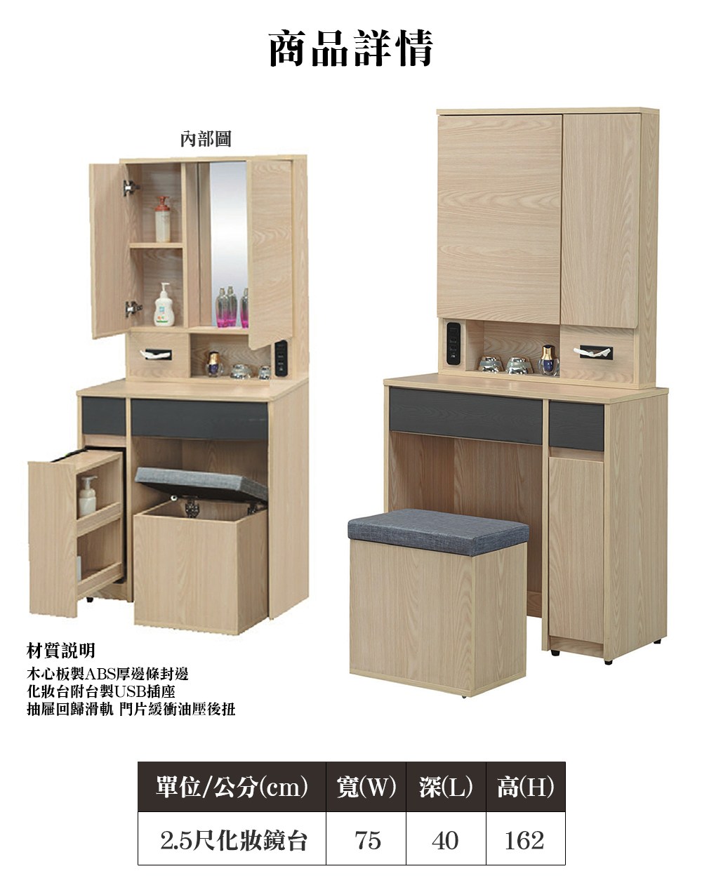 本木-玖折 2尺收納鏡台組(含椅)2尺