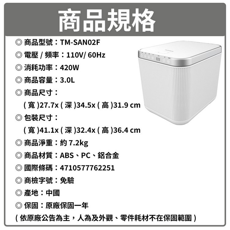 THOMSON 3公升智慧型廚餘處理機 TM-SAN02F