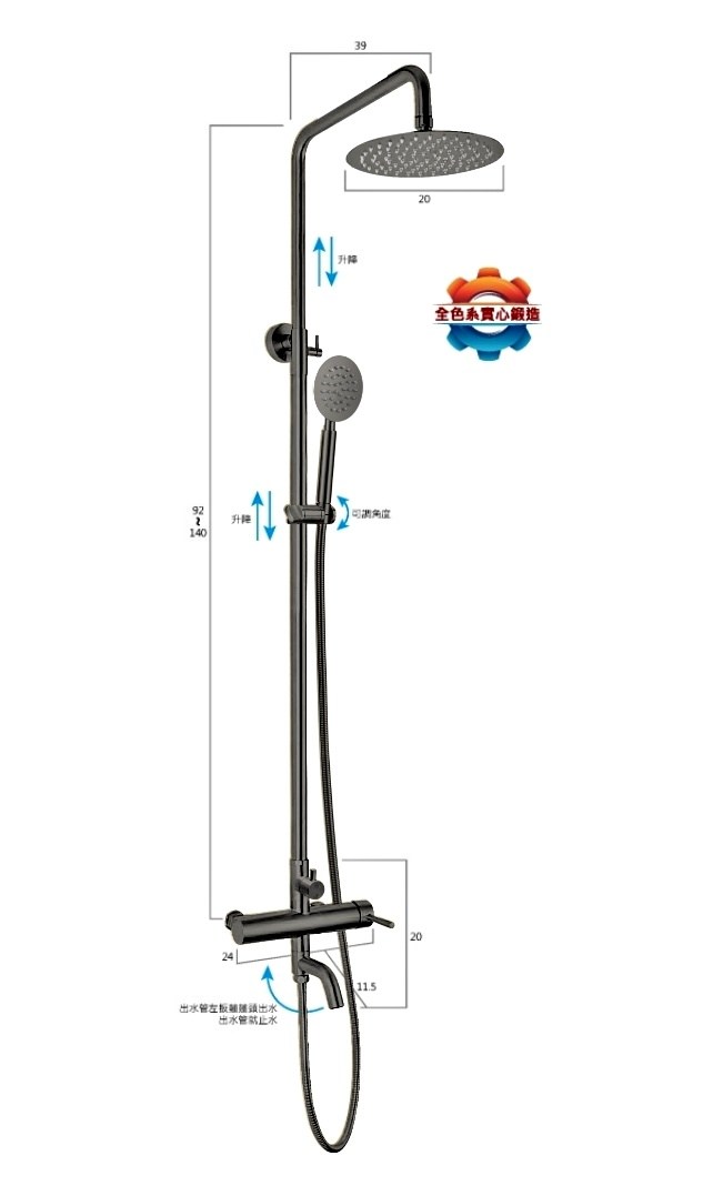 (搭配ST開關彎頭) 適用水壓範圍於1.5kg/cm2~5kg不足者需自行安裝加壓馬達