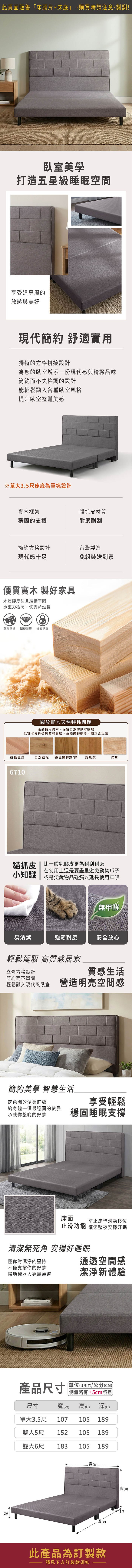 威尼6尺雙人貓抓皮床架/房間2件組(床頭+床底)卡其色