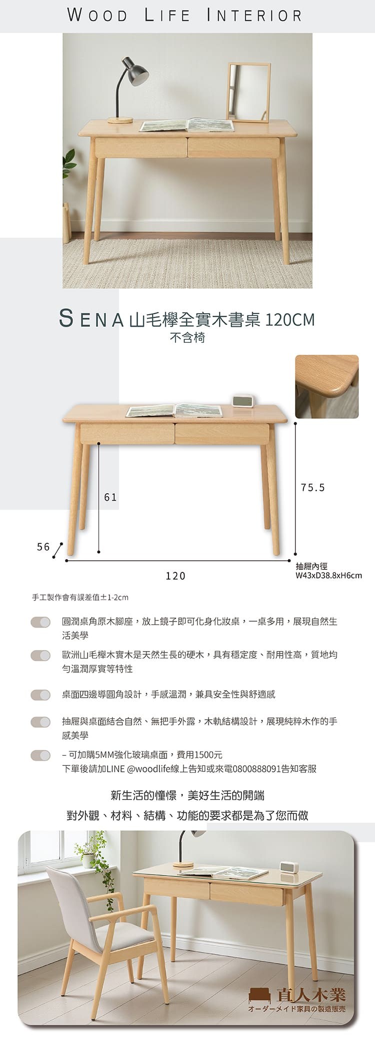 直人木業-SENA山毛櫸實木書桌120公分(不含椅)
