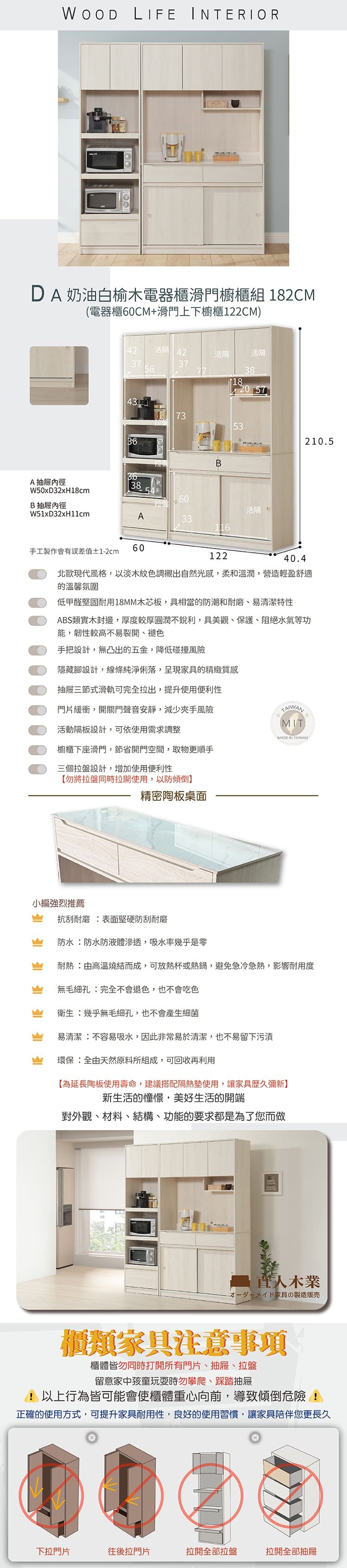直人木業-DA奶油白榆木電器櫃滑門櫥櫃組182公分(電器櫃60公分+拉盤上下櫥櫃122公分)