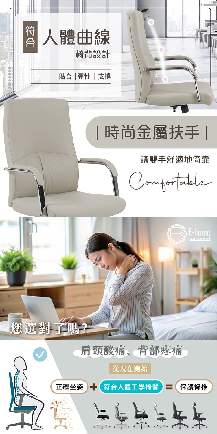 E-home 馭尚PU皮高背人體工學椅-兩色可選