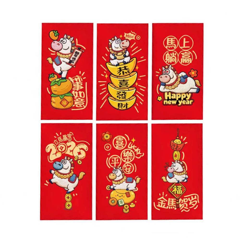 加厚燙金!6入!【蝦米良品】XU-PICK 2026 獨家插畫紅包 高質感紅包袋 馬年春聯對聯 文創設計