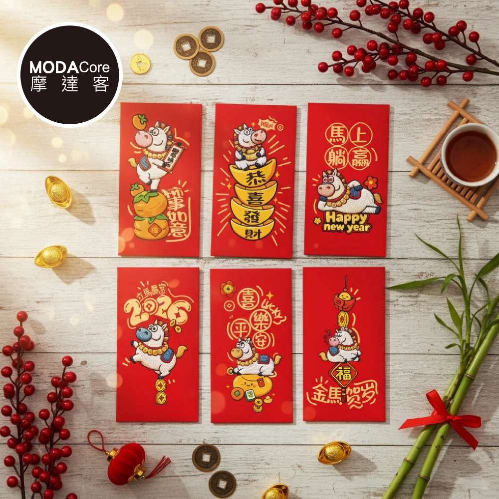 摩達客◉春節開運招財◉金馬賀歲可愛紅包袋組 6款圖案共12入組