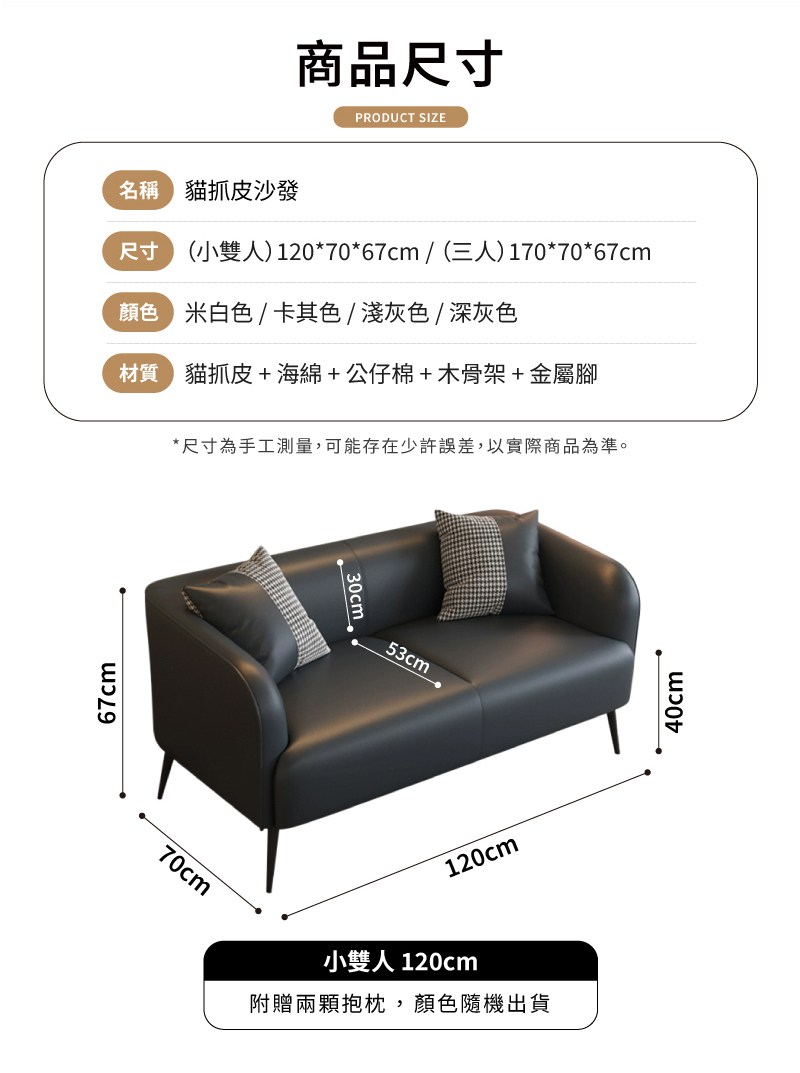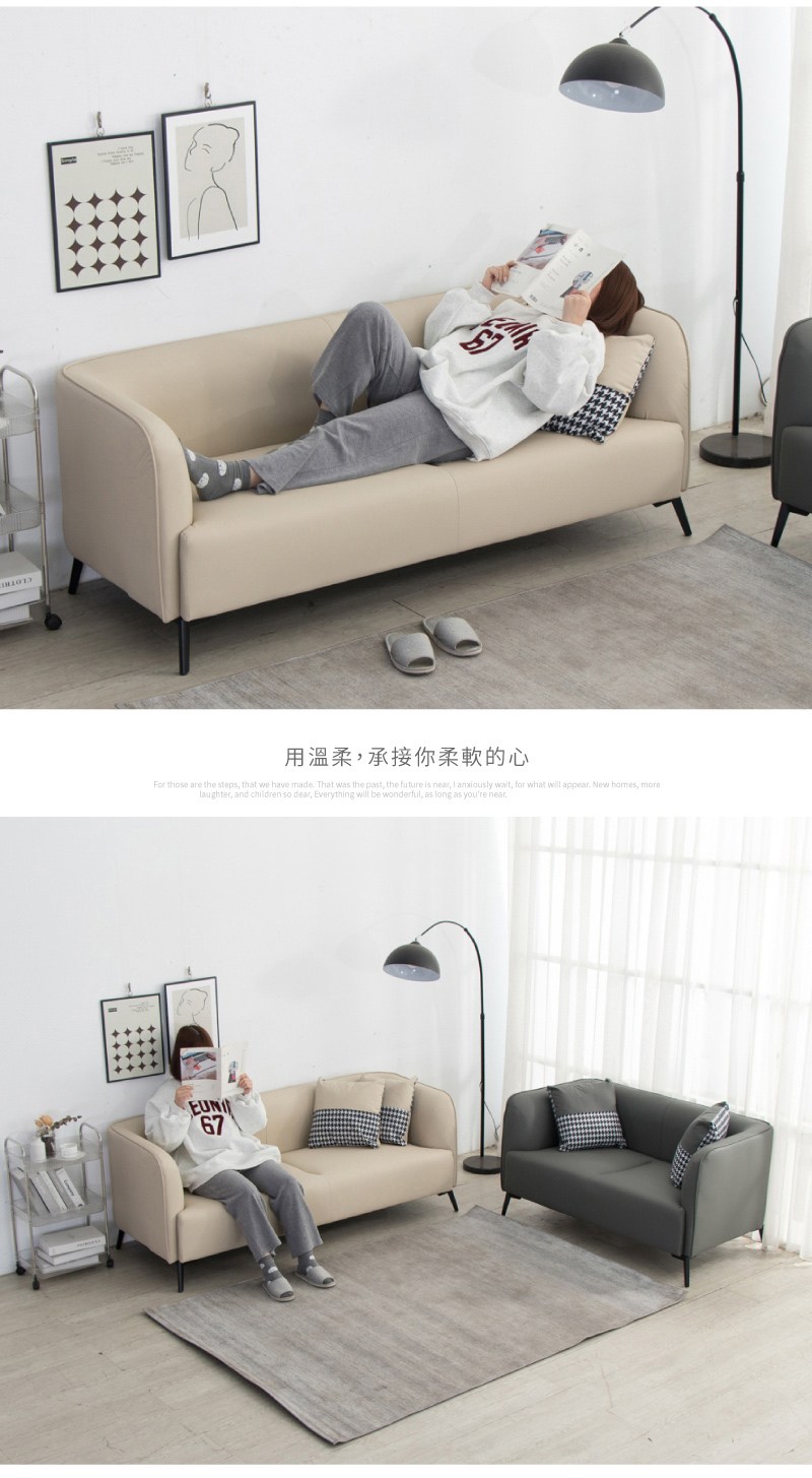 【UHO】F10-無扶手 貓抓皮三人沙發(運費另計)雙色