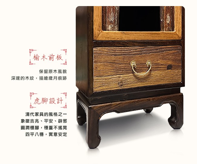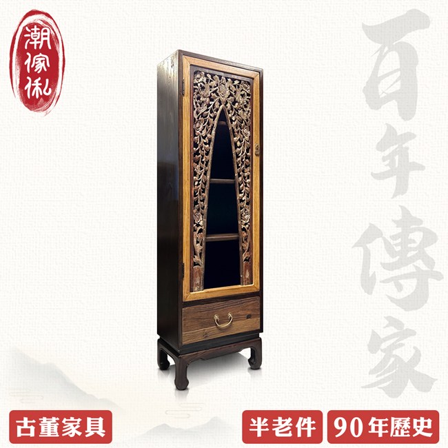 【C'est Chic】雲松翠影單抽單門實木雕刻櫃(半老件90年)-幅43cm