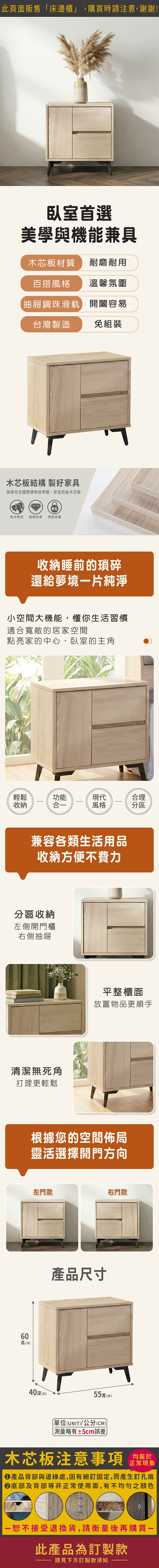 ASSARI-漫多麗床邊櫃(寬55x深40x高60cm)左款