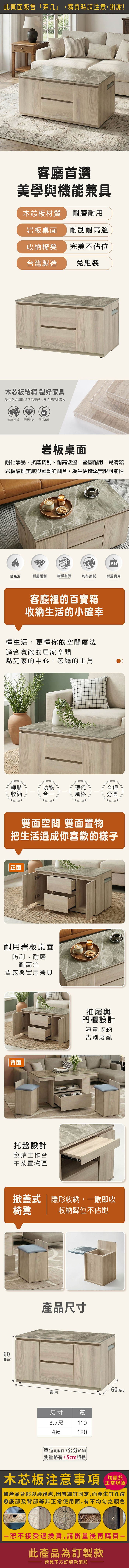 【日安家居】MIT愛拉4尺岩板茶几-含椅凳/二色秋香