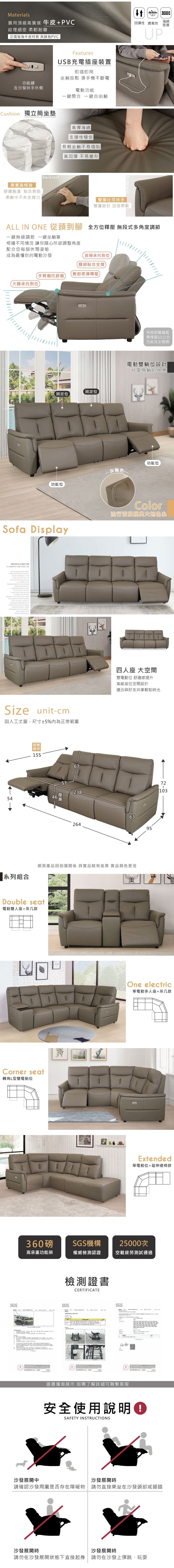 RICHOME 艾麗森無線充電L型布沙發W211xD146xH84.5 CM