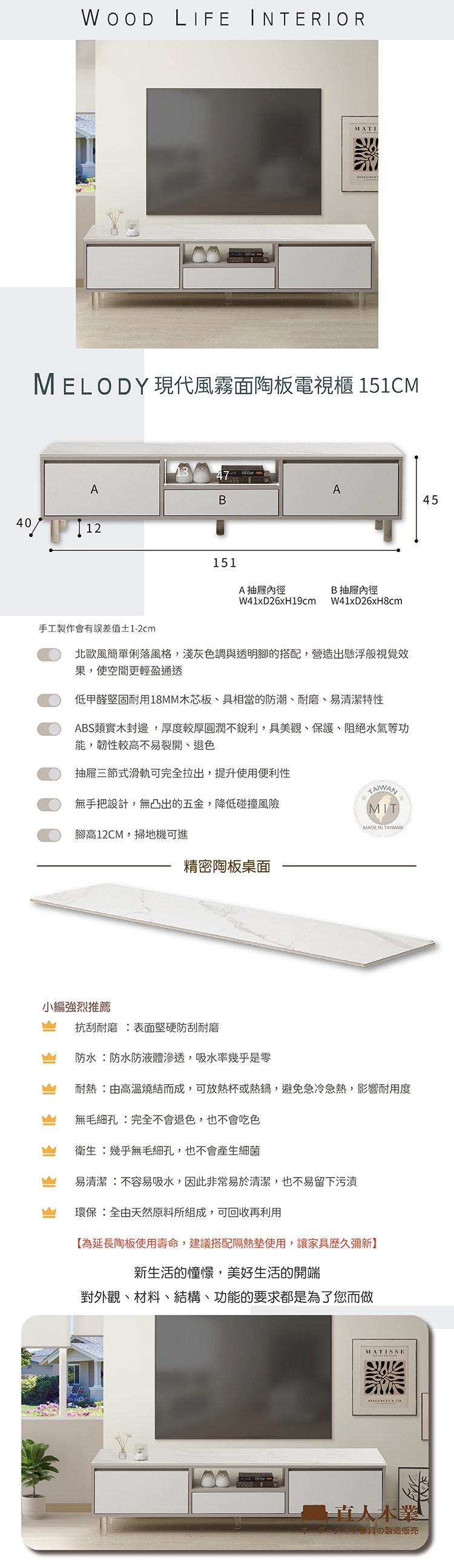 直人木業-MELODY現代風電視櫃150公分