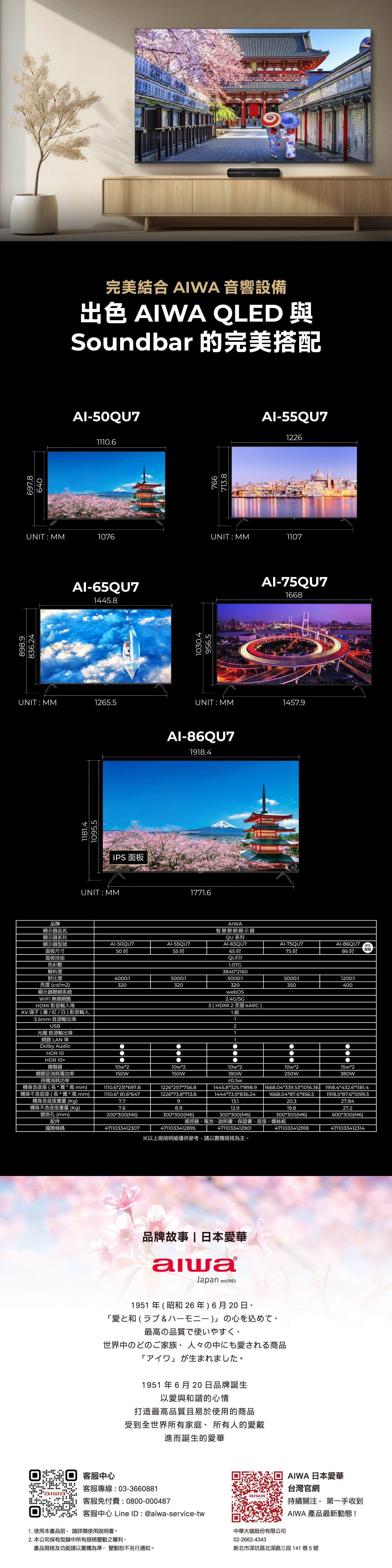 AIWA 愛華 QLED智慧聯網顯示器 50/55/65/75/86吋 雙頻WiFi 手機投影 語音助理 大型液晶電視