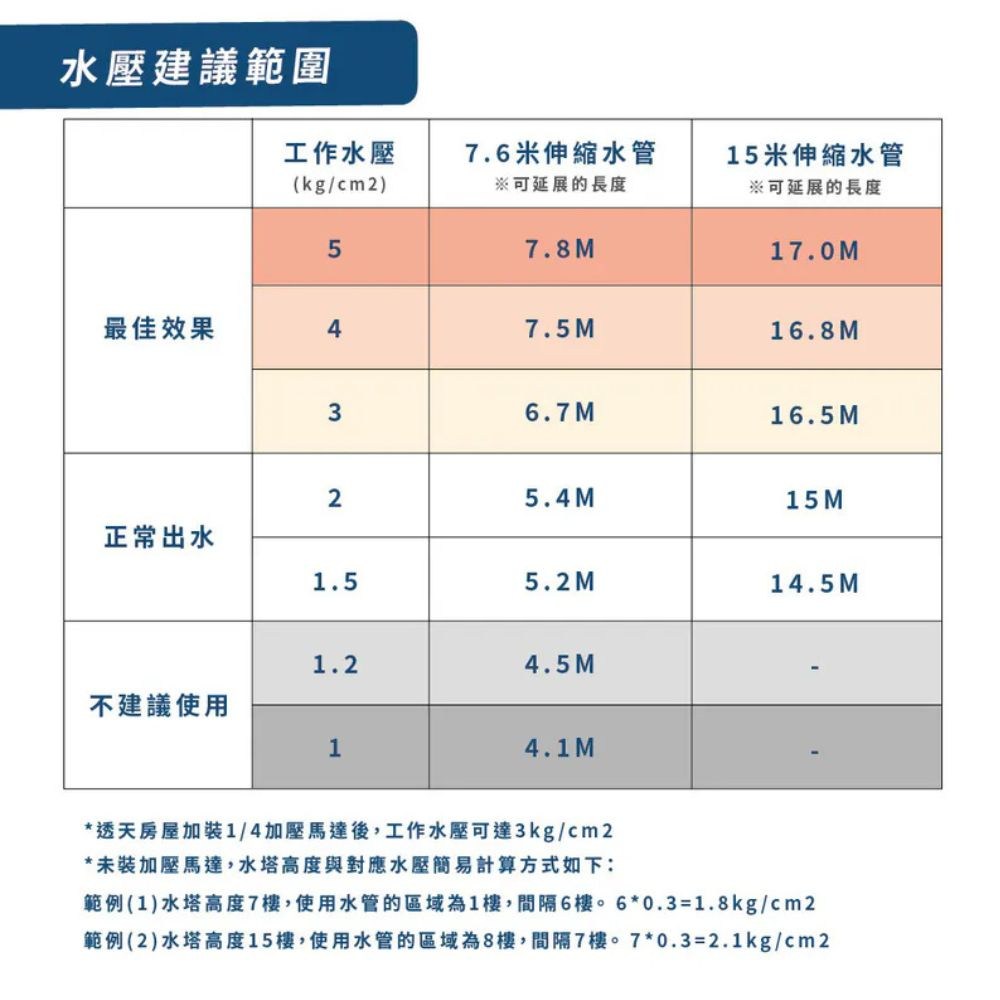 *工作水壓3~5kg/cm2 之間為最佳使用範圍。