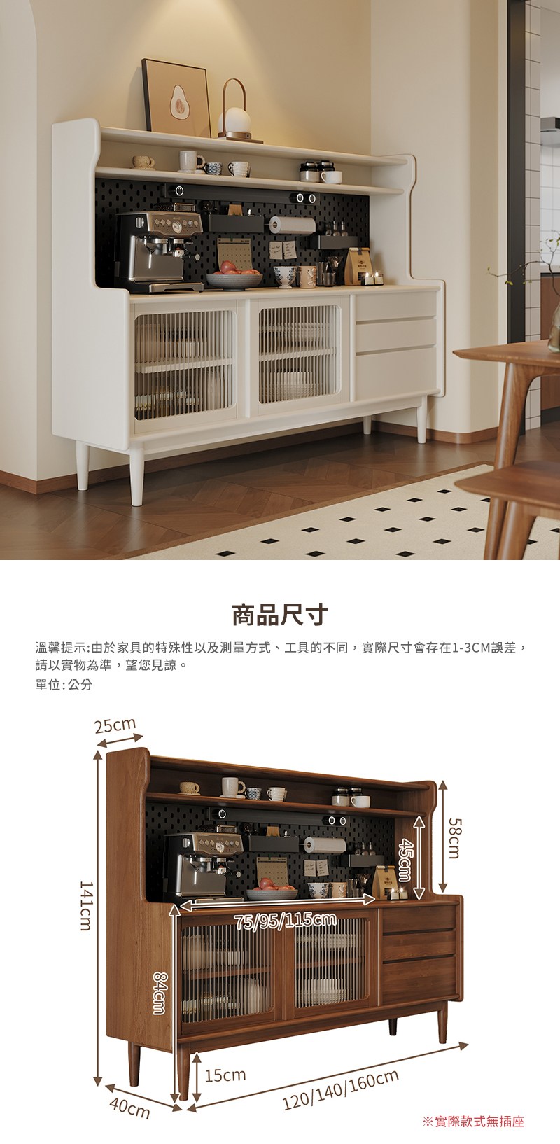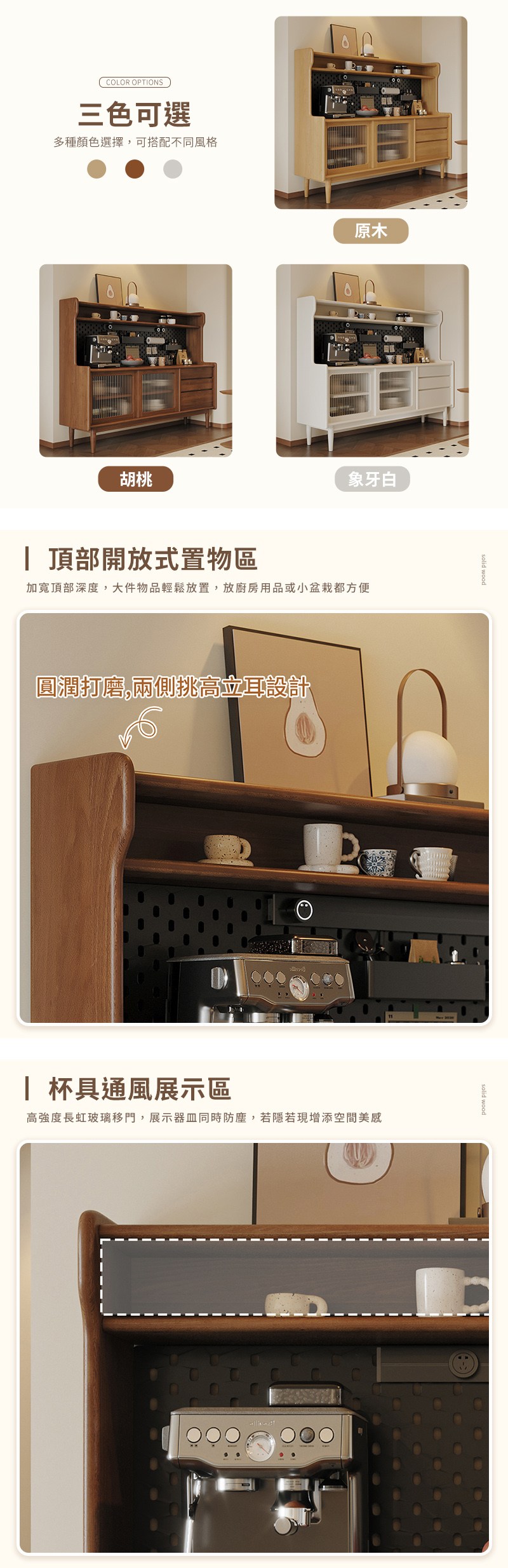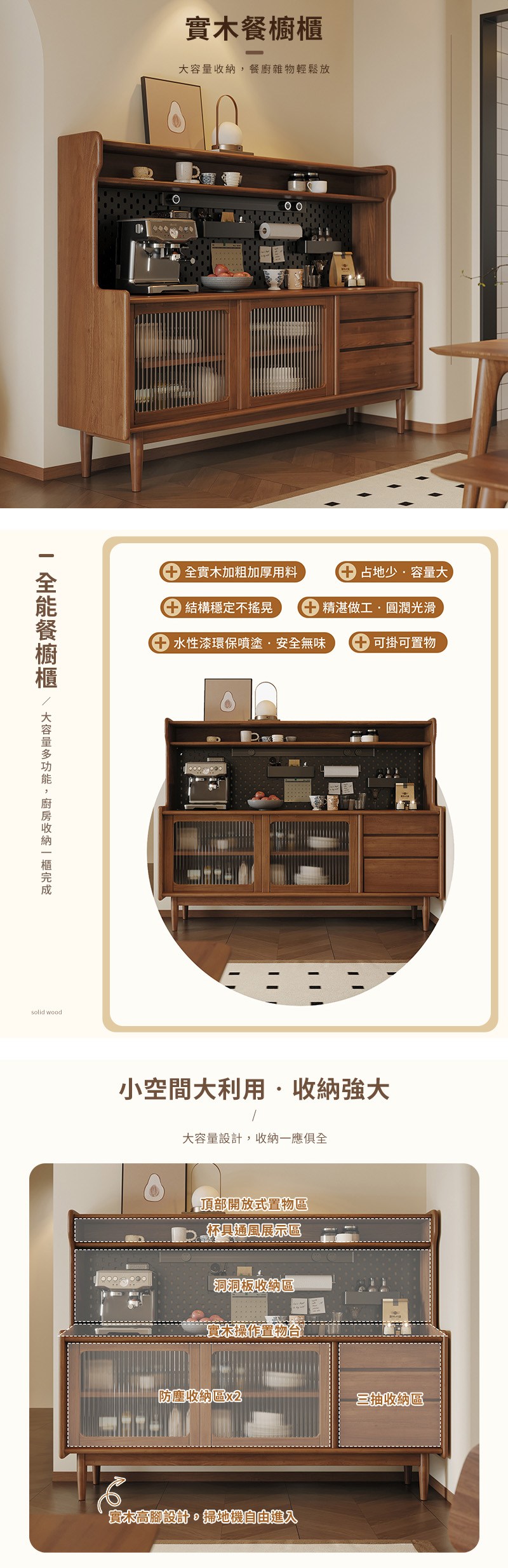 源氏木語百安卡奶油風橡膠木實木洞洞板餐櫃1.5M(無電軌)Y246Q01-(H014413570)