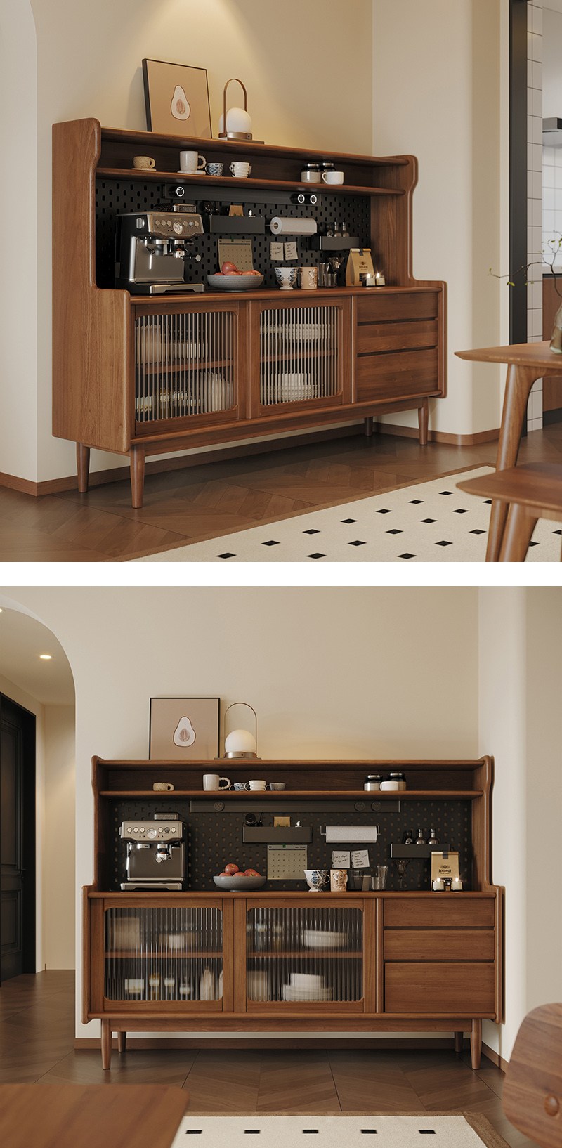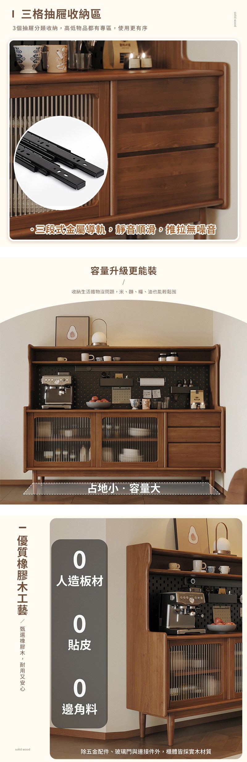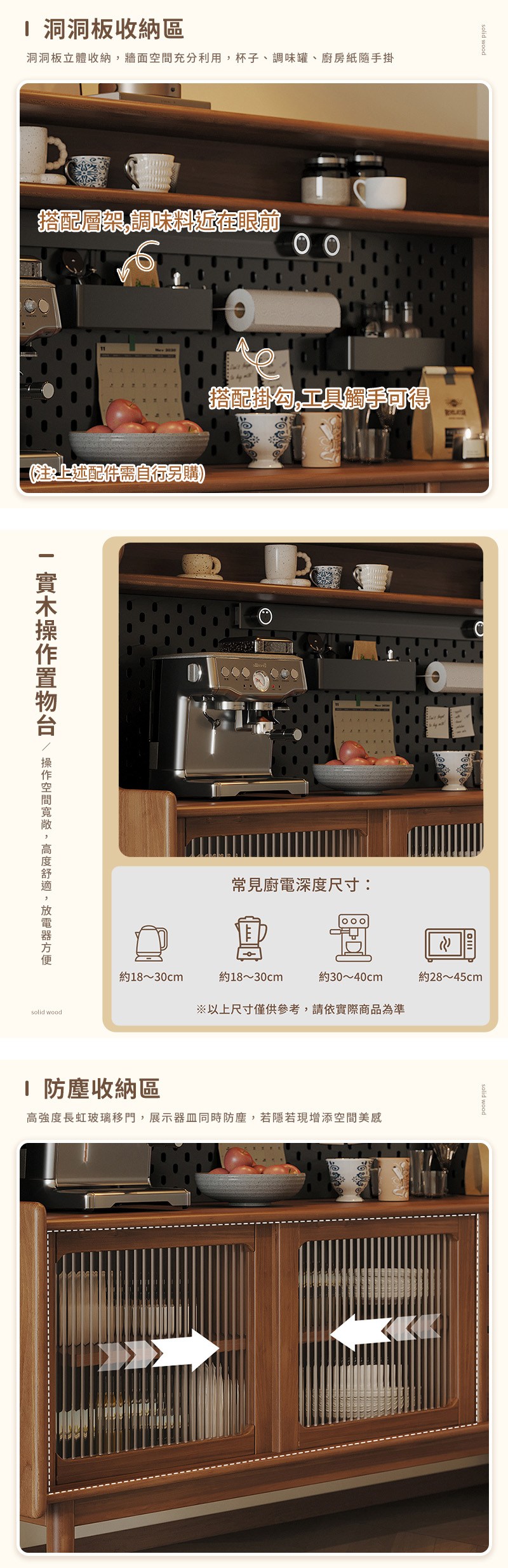 源氏木語百安卡奶油風橡膠木實木洞洞板餐櫃1.5M(無電軌)Y246Q01-(H014413570)