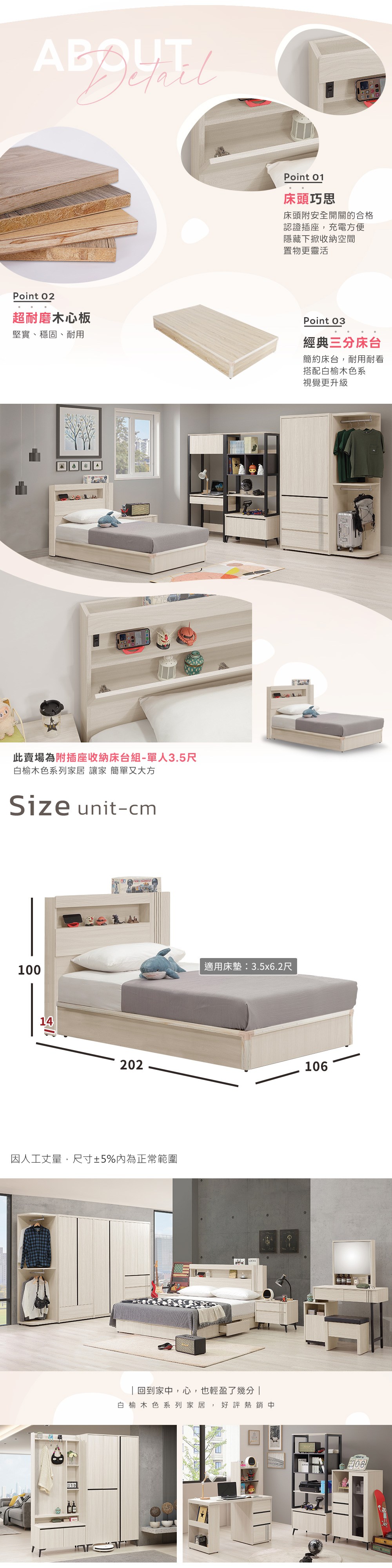 【優利亞-小蜜蜂】3.5尺床頭片+抽屜床底