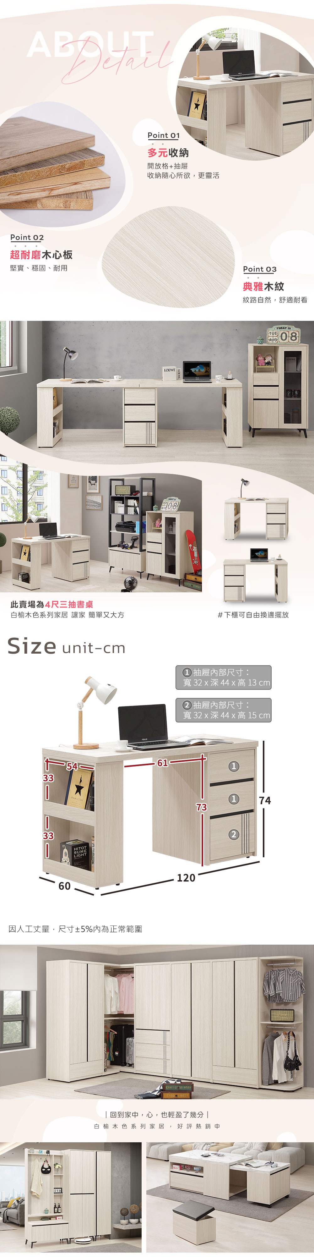 喬圓4尺木面書桌