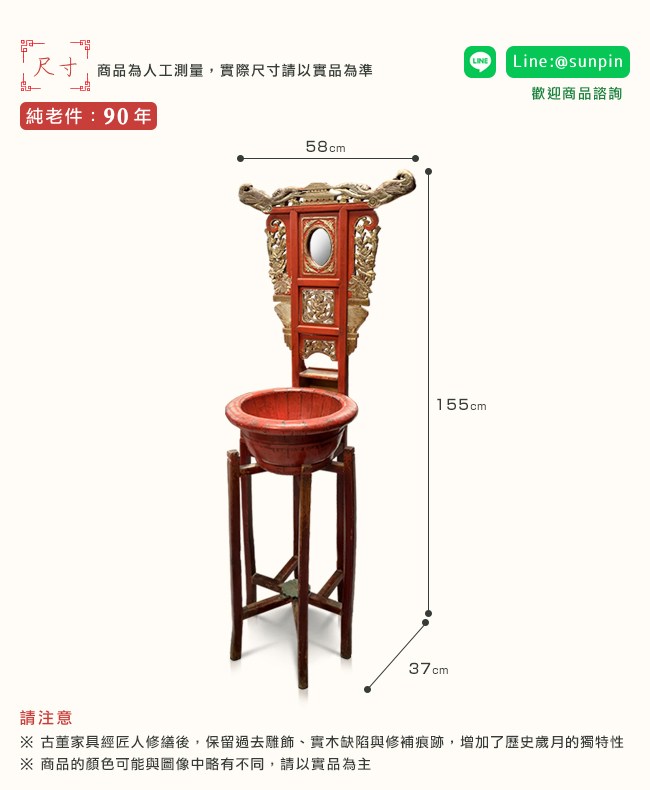 【C'est Chic】浙江餘杭杉木臉盆架(純老件90年)-幅58cm